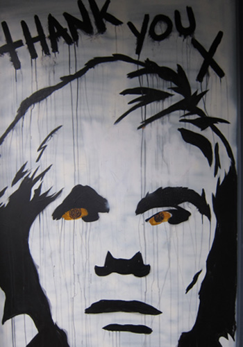 At San Francisco’s Vinyl Coffee and Wine Bar at Fell and Divisidero big bucks are paid for the Banksy-like work of Eddie Colla top and X’s “Thank you, Andy” at right.  The art successfully gives Vinyl some insider street cred in a traffic-challenged location.
